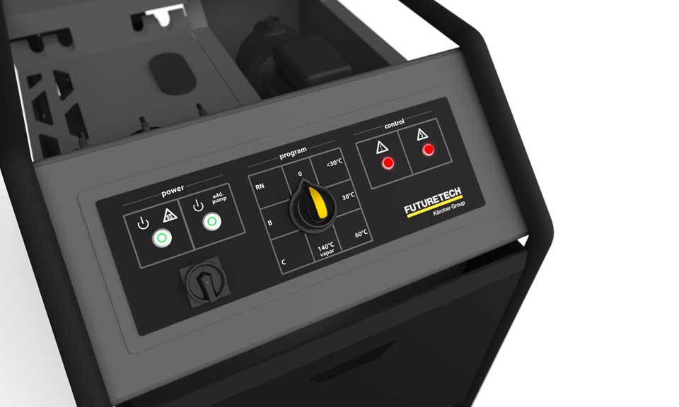Futuretech ist in Bereichen des Designs dem Corporate Design der Mutter Kärcher verpflichtet. Die Anforderungen aus der Praxis des militärischen und zivilen Einsatzes erforden von uns sehr spezielle Gestaltungslösungen. Um diese Einsatzbedingungen besser kennenzulernen und allen Projektbeteiligten Entscheidern sowie der Leitung der Kärcher Designabteilung vor Augen führen zu können, veranstalteten wir zu Projektbeginn einen Workshop anhand eines dem Einsatzfall nachgestellten Szenario. Aus den Erkenntnissen und Beobachtungen generierten wir gemeinsam das bis Dato noch nicht bestehende Lastenheft für das Designprojekt.